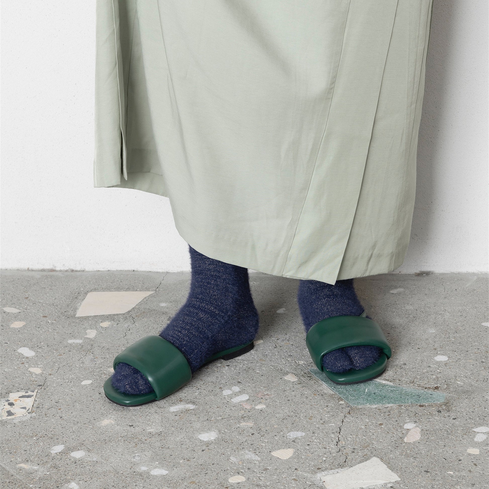 シャギー素材にラメ糸を一緒に編み込んだオリジナルのソックス。少し生地に厚みもあり、タビ型のソックスなので冬のシーズンはより暖かさを感じられます。