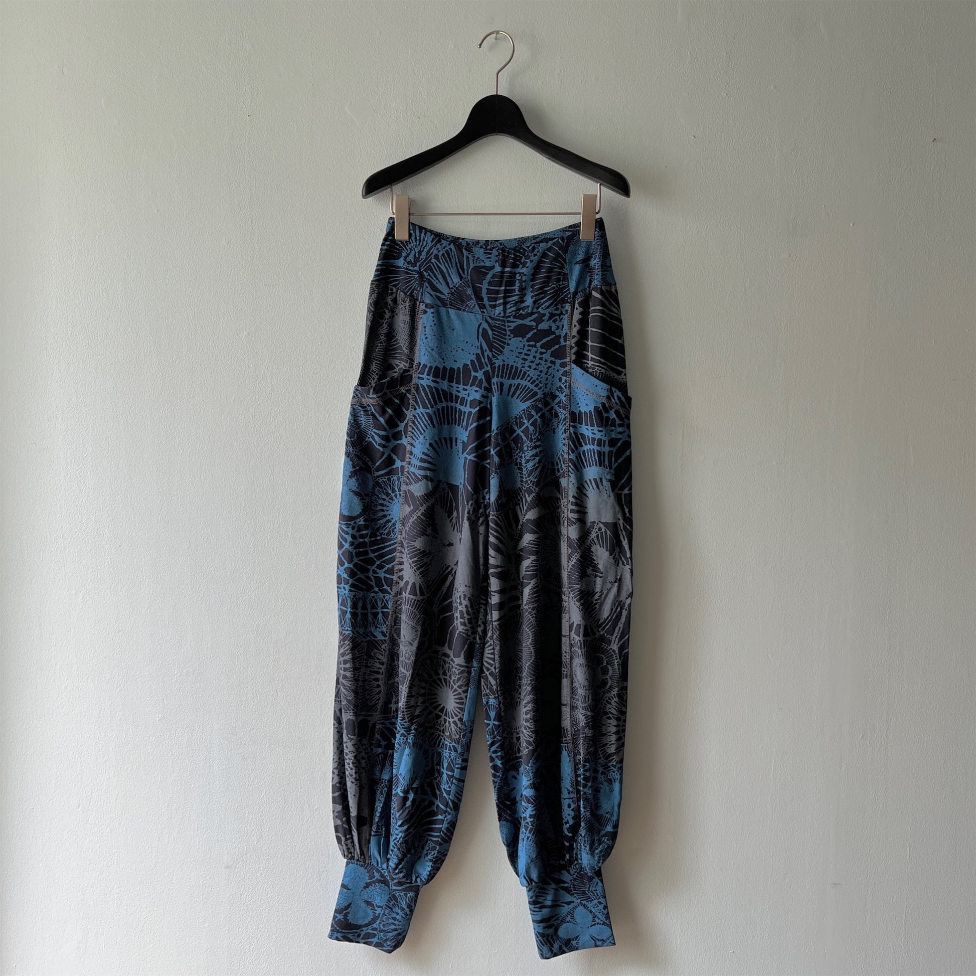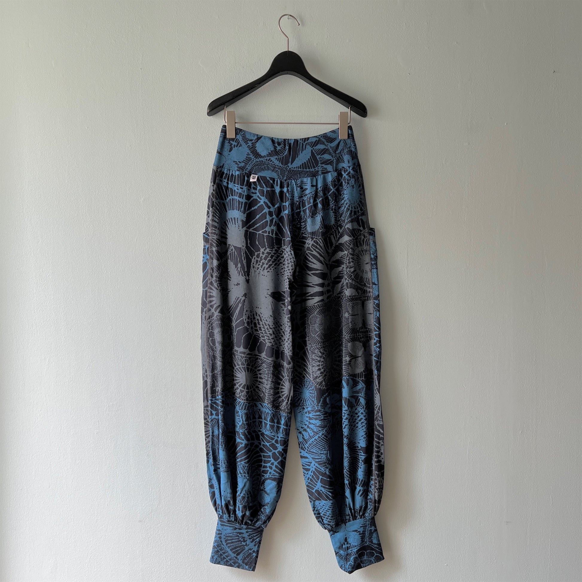 切り替えのポケットがついたアラジンパンツ。【Juana de Arco】アルゼンチン発のライフスタイルブランド。カラフルで1点もののウェアやランジェリー、インテリアを展開している。アルゼンチン・ブエノスアイレス生まれのJuana de Arco(ホォアナデアルコ)。1998年設立。ポジティブでのびのびとした色使いと唯一無二のテキスタイルが特徴。カラフル&ハートフルな1点もののランジェリー、ヨガウェア、リラックスウェアといったレディースラインの他にメンズ、インテリア、キッズラインまで充実したラインナップで展開。愛情溢れる心豊かな生活を提案するライフスタイルブランド。●お洗濯に関して1点ずつハンドメイドで作られた製品です。最初のお洗濯は色落ちにご注意くださいませ。優しく手洗いもしくは洗濯機のおしゃれ着洗いモードでお洗濯推奨です。長年愛用しておりますがオーナーはネットに入れておしゃれ着洗いで長持ちしています。モダール生地は水濡れすると重たくなるので乾かす際にワンピースやパンツなどの生地分量が多いものはそのままハンギングして干すとだんだん生地が伸びてきます。干す際に重さを分散させるように干すのがおすすめです。(平置きまでいかずともハンガー二本にわたしてかけるなど)水濡れしたまま放置は色移りの可能性がございますのでご遠慮ください。こちらの商品は実店舗でも取り扱っております。オンラインショップ上でご注文いただいても、現品が実店舗にて「売約済」となっておりご希望に添えない場合もございます。その際はメールにてご連絡いたしますので、予めご了承ください。