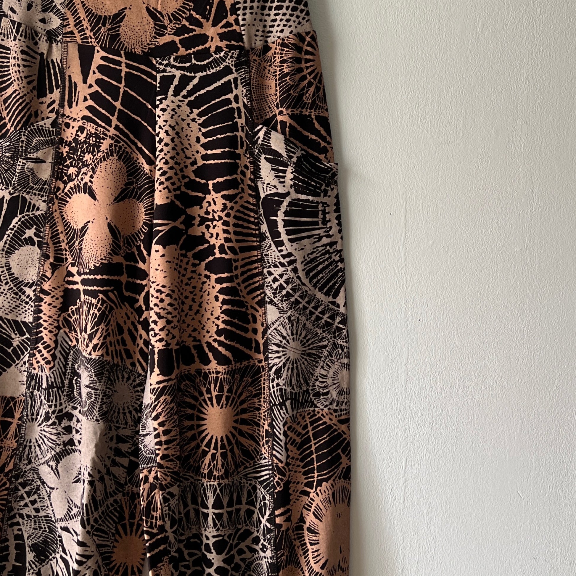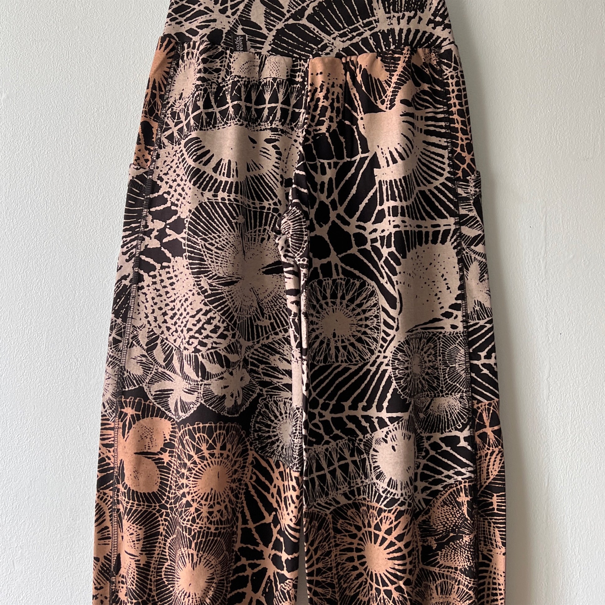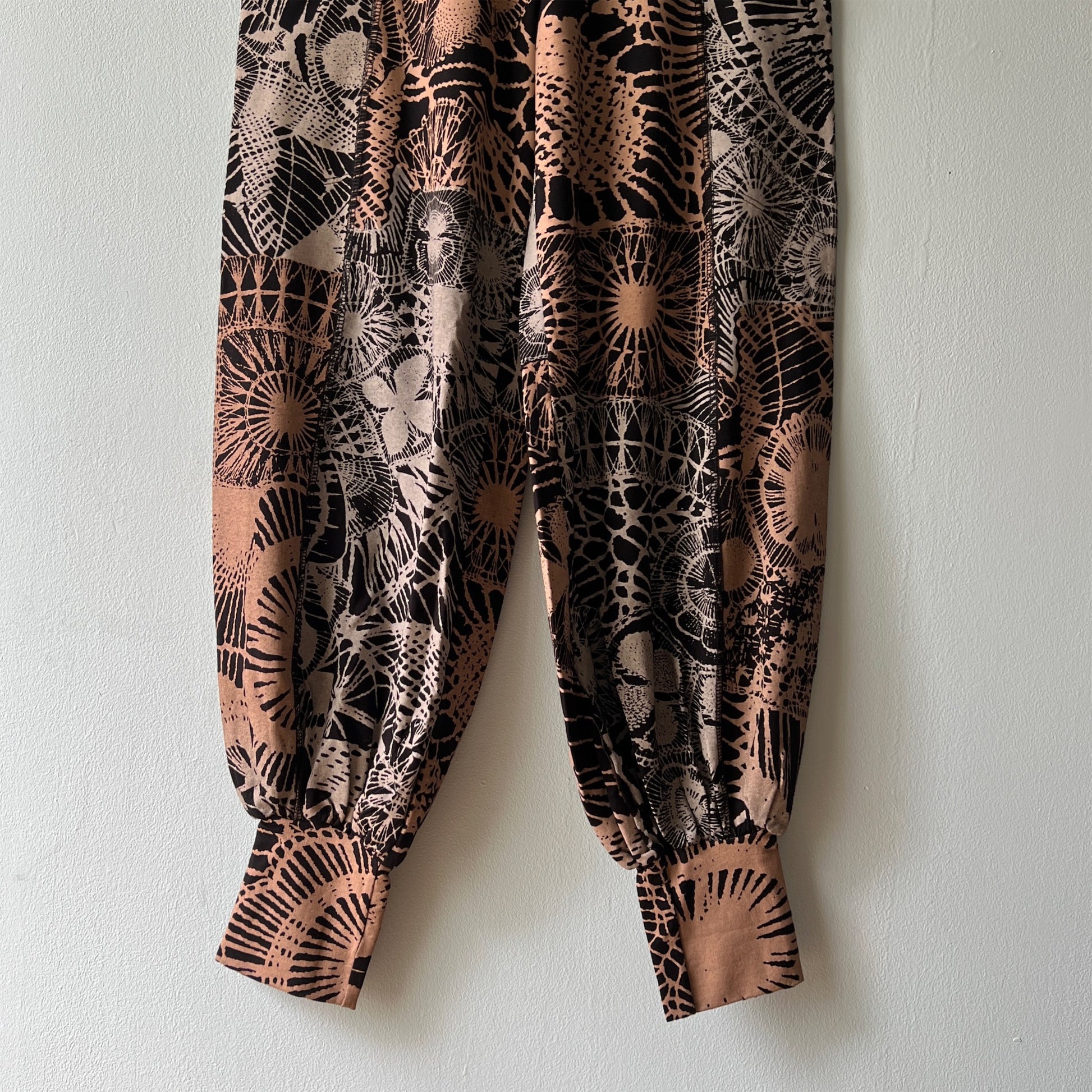 切り替えのポケットがついたアラジンパンツ。【Juana de Arco】アルゼンチン発のライフスタイルブランド。カラフルで1点もののウェアやランジェリー、インテリアを展開している。アルゼンチン・ブエノスアイレス生まれのJuana de Arco(ホォアナデアルコ)。1998年設立。ポジティブでのびのびとした色使いと唯一無二のテキスタイルが特徴。カラフル&ハートフルな1点もののランジェリー、ヨガウェア、リラックスウェアといったレディースラインの他にメンズ、インテリア、キッズラインまで充実したラインナップで展開。愛情溢れる心豊かな生活を提案するライフスタイルブランド。●お洗濯に関して1点ずつハンドメイドで作られた製品です。最初のお洗濯は色落ちにご注意くださいませ。優しく手洗いもしくは洗濯機のおしゃれ着洗いモードでお洗濯推奨です。長年愛用しておりますがオーナーはネットに入れておしゃれ着洗いで長持ちしています。モダール生地は水濡れすると重たくなるので乾かす際にワンピースやパンツなどの生地分量が多いものはそのままハンギングして干すとだんだん生地が伸びてきます。干す際に重さを分散させるように干すのがおすすめです。(平置きまでいかずともハンガー二本にわたしてかけるなど)水濡れしたまま放置は色移りの可能性がございますのでご遠慮ください。こちらの商品は実店舗でも取り扱っております。オンラインショップ上でご注文いただいても、現品が実店舗にて「売約済」となっておりご希望に添えない場合もございます。その際はメールにてご連絡いたしますので、予めご了承ください。