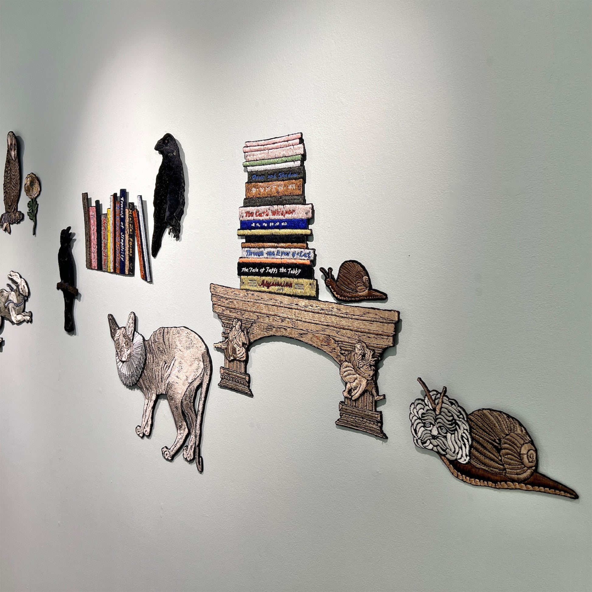 たくさんの刺繍糸をつけ替えては刺繍、付け替えては刺繍を繰り返しグラデーションや影を表現されています。