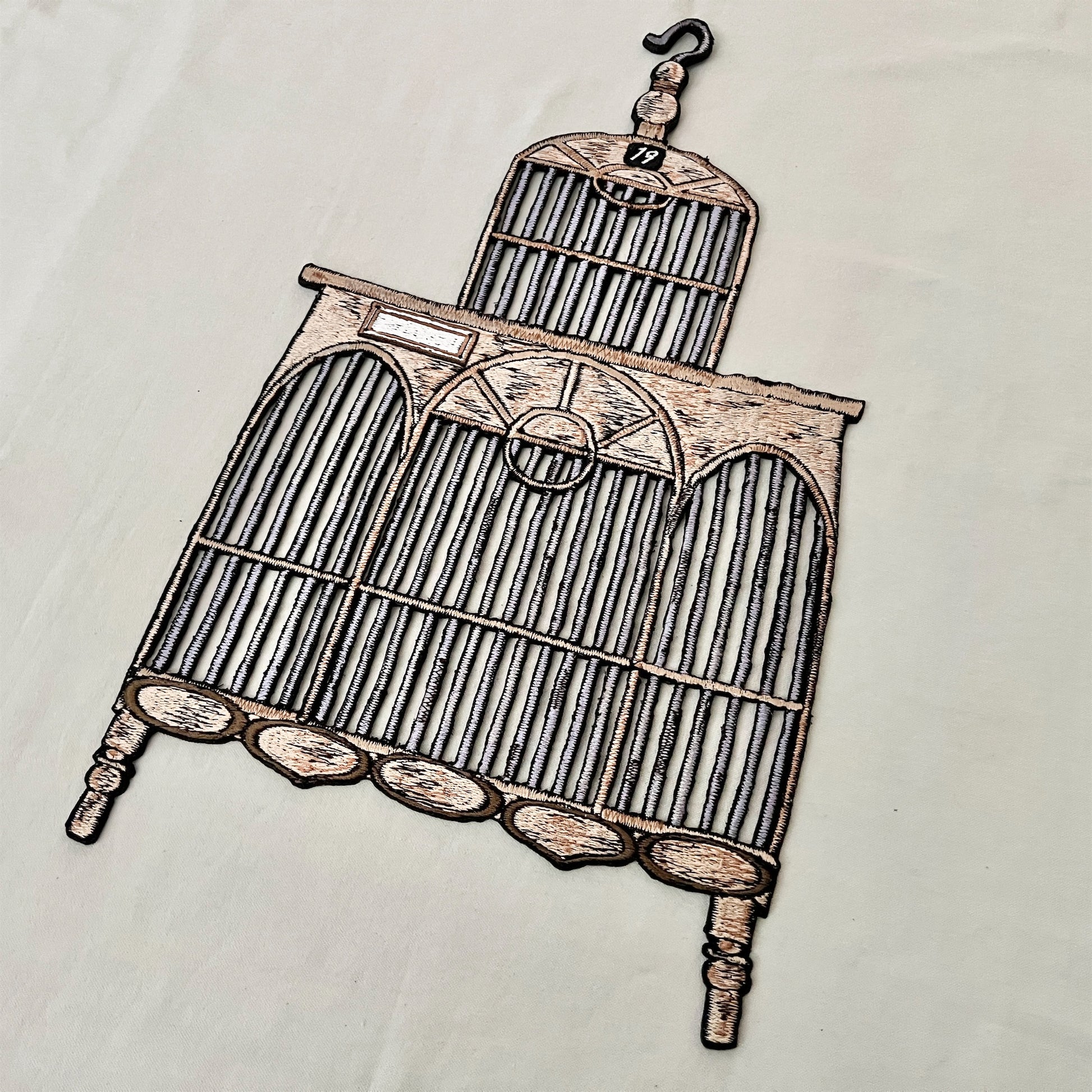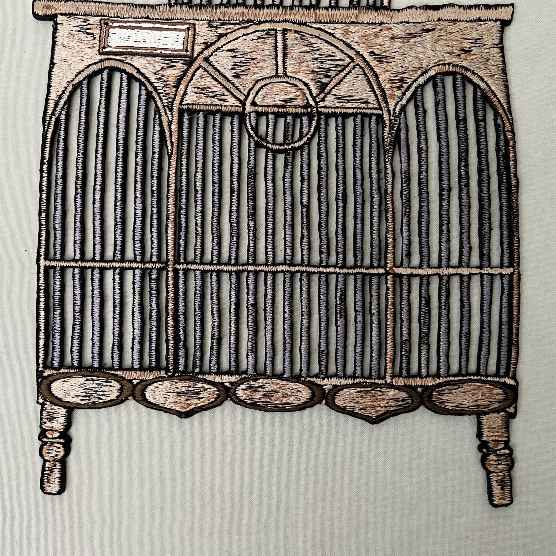 横振り刺繍によってひと針ひと針埋めていく生地は平面から立体へ刺繍による空間演出をします。