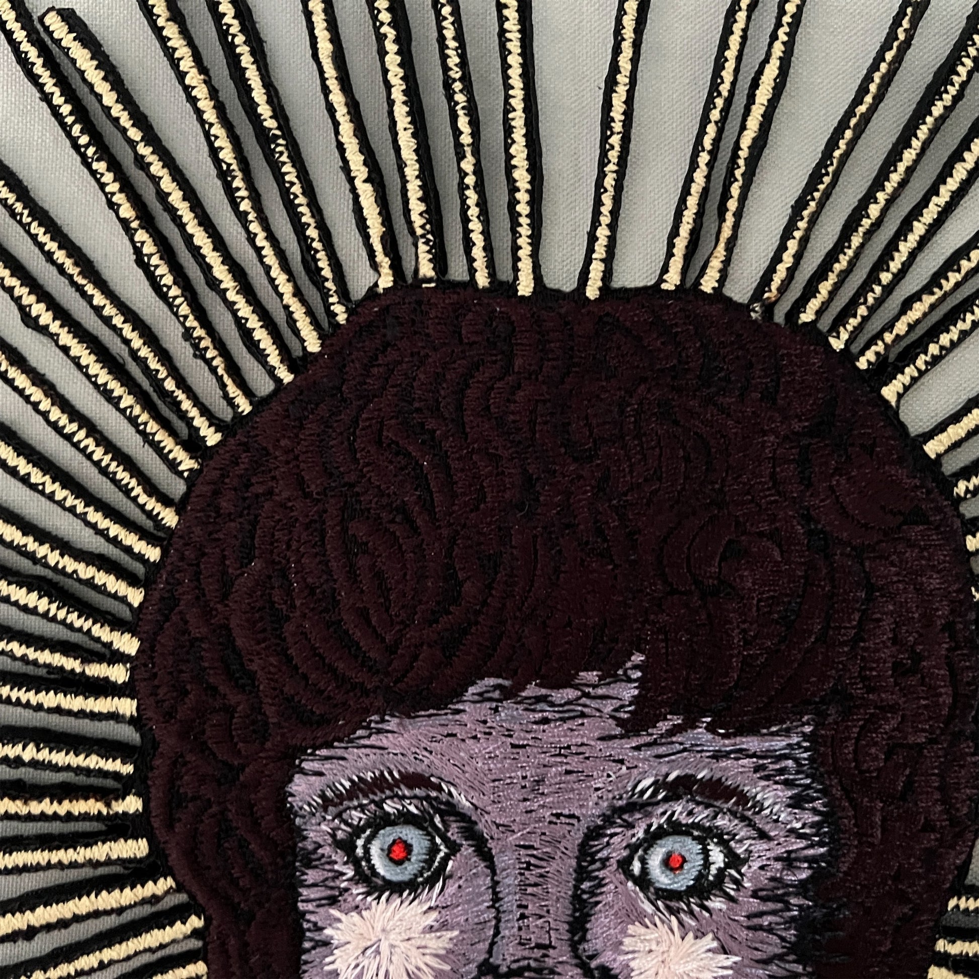 たくさんの刺繍糸をつけ替えては刺繍、付け替えては刺繍を繰り返しグラデーションや影を表現されています。